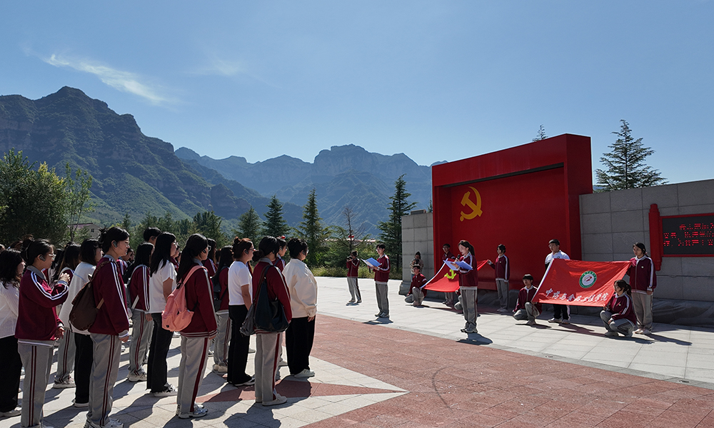 队伍在八路军革命旧址前举行纪念仪式,学生代表田怡珍、韩永超以“迎国庆・忆初心——在左权麻田传承抗战精神”为题进行了发言,回溯了左权将军事迹与老区军民鱼水情;学院党委副书记胡松洁带领全体师生党员重温入党誓词。