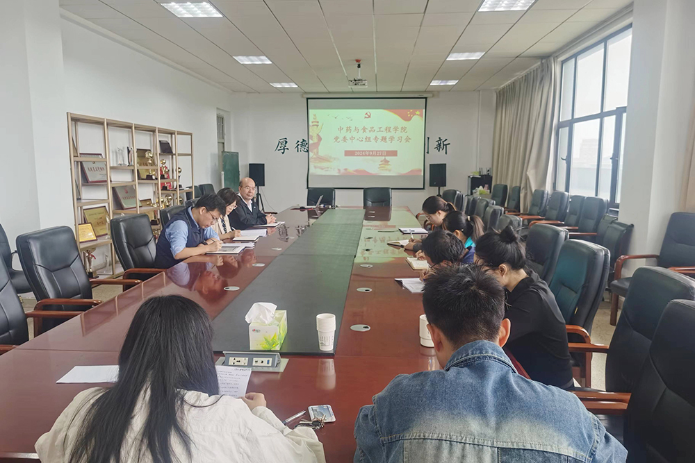 9月27日,yl8cc永利官网党委召开理论学习中心组(扩大)学习会议,学习贯彻习近平总书记在全国教育大会上的重要讲话精神,学习贯彻习近平总书记关于作风建设的重要论述,学习习近平总书记在全面推动黄河流域生态保护和高质量发展座谈会上、在甘肃、陕西考察时的重要讲话精神,学习贯彻习近平总书记对党纪学习教育作出的重要指示精神,传达学习《中共中央 国务院关于弘扬教育家精神加强新时代高素质专业化教师队伍建设的意见》《中国共产党不合格党员组织处置办法》《中共中央 国务院关于深化改革加强食品安全工作的意见》和中共山西省委十二届八次全体会议精神。学院党委书记庞维荣主持,全体党委委员、各支部书记参加学习。