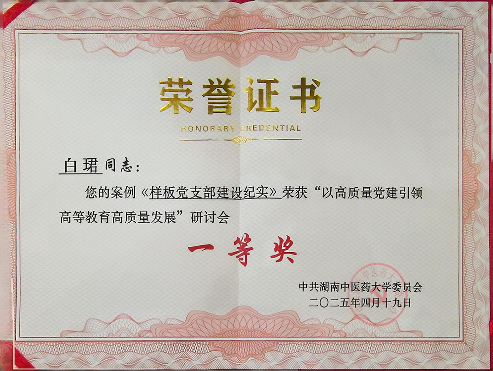 这一成果是对学院党建工作的认可,是对党建引领与育人成效融合成果的重要检验。yl8cc永利官网学生第二党支部将继续以此为契机,持续深化工作机制,深度融合党建引领与学生专业成长、聚焦组织力提升,让党旗始终在育人一线高高飘扬,为培养“厚德求真、守正创新”的新时代中医药人才贡献更强力量。