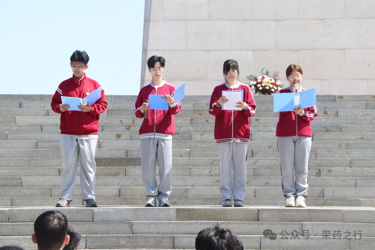 队伍在百团大战纪念碑前举行了纪念仪式,向革命先烈敬献花篮、整理绶带,表达对英烈的深切缅怀;学生代表做了“传承爱国星火 照亮复兴征途”为主题的演讲;赵瑞宝致辞并殷切期望全体同学将抗日军民的斗争精神转化为服务地方战略的实际行动。随后,师生参观了纪念馆并重温入党誓词。