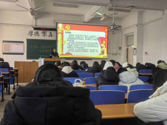 为深入学习贯彻党的二十届四中全会精神,引导全院师生准确把握全会核心要义与实践要求,切实把思想和行动统一到党中央决策部署上来,我院紧扣为党育人、为国育才根本使命,以主题班会、教室文化氛围布置、学生党员宣讲为主要形式,开展了一系列学习活动。