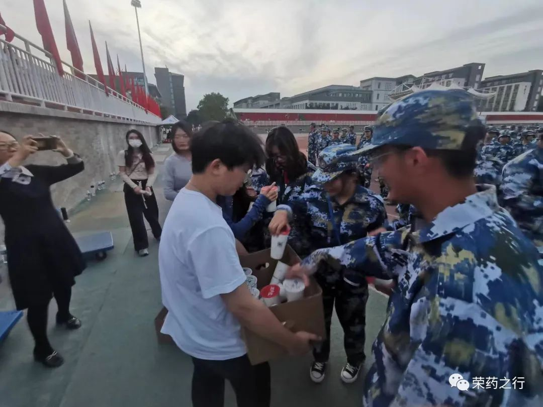 军训进行的如火如荼,学生会各成员抓住了同学们休息的空隙,为新生送上秋天的第一杯奶茶。沉重的纸箱,装载着秋天无限的暖意,更承载着学长学姐们满满的心意。温热的奶茶为新生们驱散了身体的疲惫,而学长学姐们的关心为他们心头带来一份暖意。慰问结束后,学长学姐们收到了新生们腼腆而又真挚的微笑,这无疑是这一晚中最好的回报。