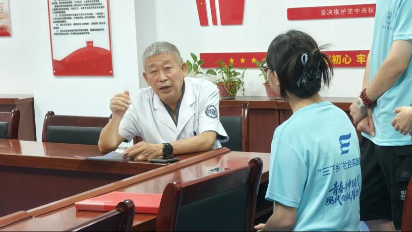 抵达目的地后,实践队首先走进当地社区医院,与有着丰富基层经验的胡忠安医生展开深入交流。从从医历程到日常工作细节,从印象深刻的病例故事到服务群众的心得感悟,胡医生的分享让队员们全方位了解了基层医者的工作常态。凭借精湛医术与耐心服务,他在当地早已赢得群众的广泛赞誉,而一句 “但行好事,莫问前程” 的执业箴言,更让队员们深刻体会到基层医疗卫生工作的重要价值与现实挑战。
