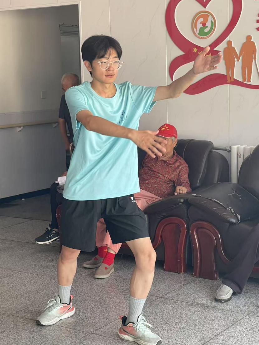 作为中医药院校学子,实践队始终将文化传承视为重要使命。7 月 3 日,依托专业优势,队员们化身中医药文化传播者:耐心解答养生咨询,细致教授八段锦、太极拳等功法,让 "全民健康" 理念融入银发生活;共备餐时的协作互动,更让中医 "治未病" 智慧在烟火气中自然流淌,实现了文化传承与养老服务的有机融合。
