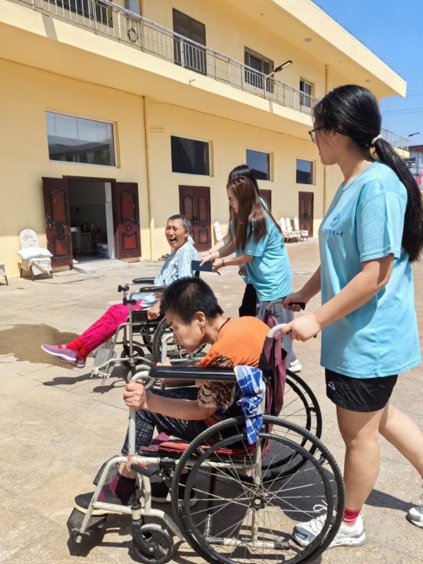 7 月 8 日,实践活动接近尾声。王老师带领队员们与老人们深入交流,详细了解养老院运营现状,并结合专业知识为护工提供养老照护指导,队员们认真学习领悟。离别之际,队员与老人们依依不舍,真挚情感见证了一周实践中建立的深厚情谊。
